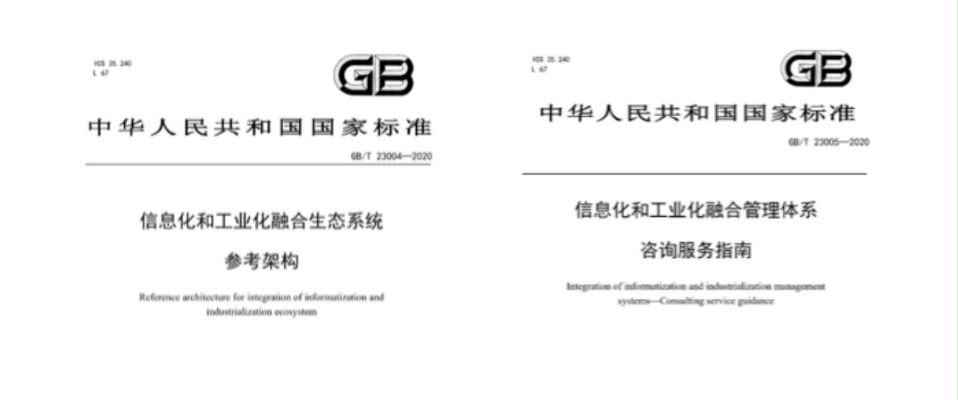 2020年9月29日,国家市场监督管理总局、国家标准化管理委员会发布2020年第20号中国国家标准公告,批准国家标准GB/T 23004-2020《信息化和工业化融合生态系统参考架构》(以下简称《参考架构》)和GB/T 23005-2020《信息化和工业化融合管理体系 咨询服务指南》(以下简称《咨询服务指南》)正式发布,这是我国两化融合标准化建设的又一重要进展。